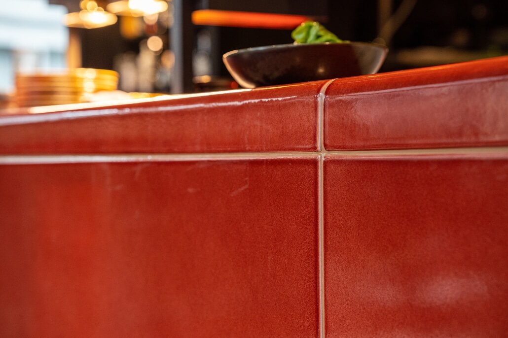 Dans cet établissement à l’identité marquée, la matière joue un rôle central. La lave émaillée apporte une présence minérale forte, tout en conservant une élégance raffinée parfaitement adaptée à l’univers d’un restaurant haut de gamme.