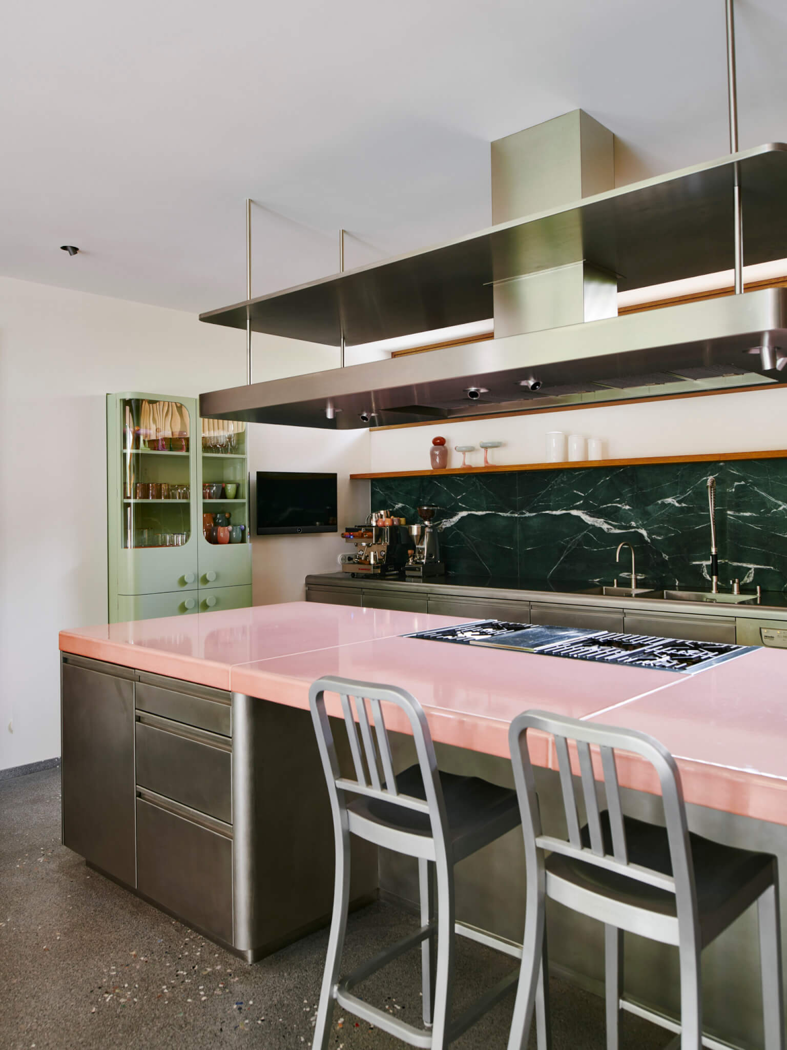 En Allemagne, Pyrolave signe un plan de travail d’îlot central en lave émaillée, conçu sur mesure pour devenir la pièce maîtresse de la cuisine. Ce projet illustre la capacité de la matière à structurer l’espace tout en apportant une identité forte et singulière.
